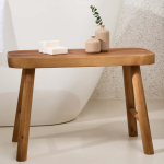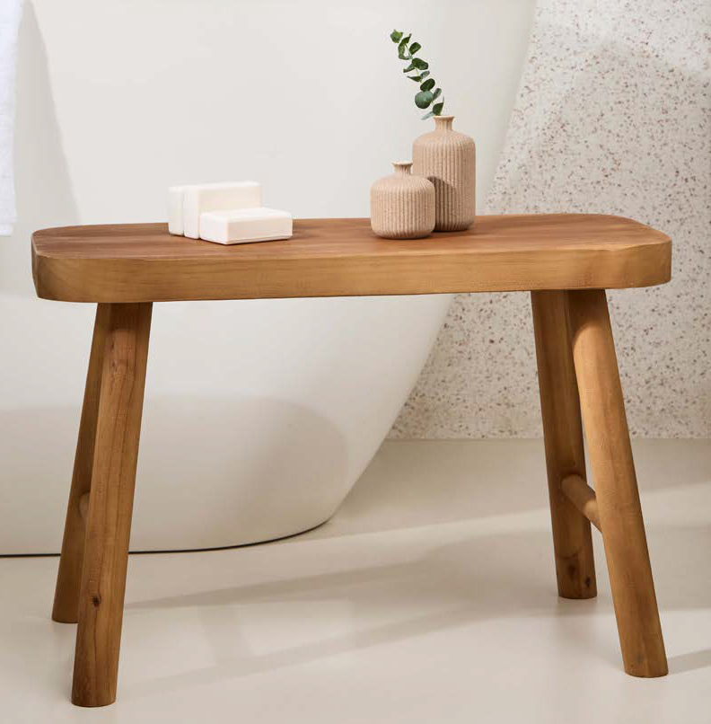 Banco em madeira super estiloso que pode servir como apoio, peça decorativa: bem versátil e charmoso!