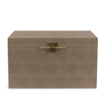 Bau decorativo com revestimento em PU estilo couro: elegante, sofisticado e com detalhe encantador no puxador.