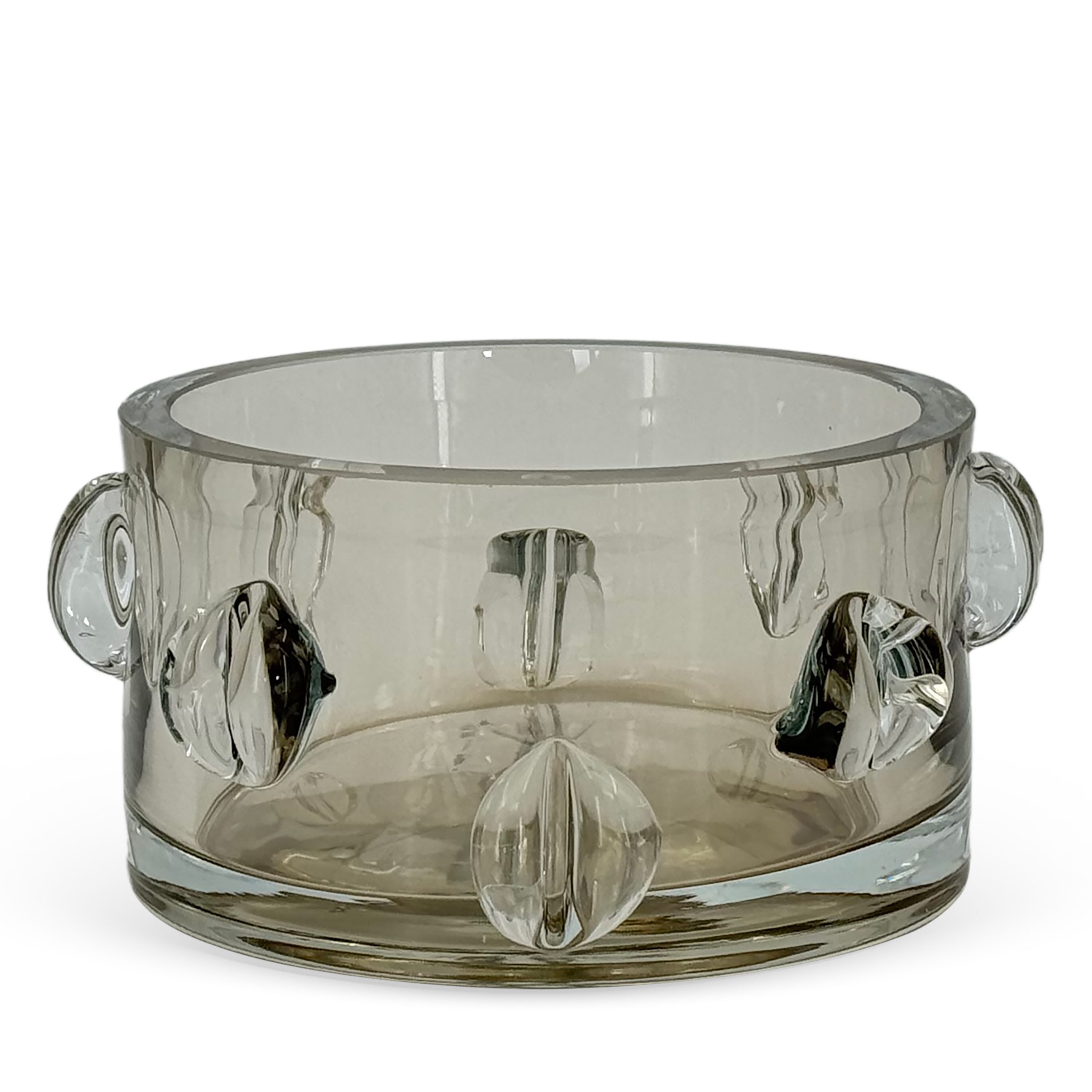 Centro de mesa em vidro com detalhes laterais estilo murano na cor fumê: deslumbrante para agregar à decoração.