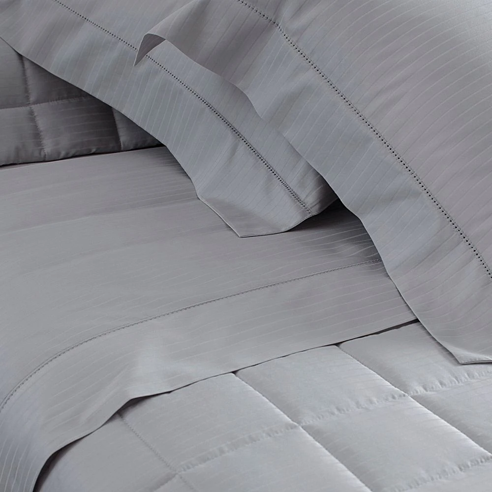 Kit Colcha Queen Damask Stripes. Em tecido 100% algodão de excelente qualidade, cetim 300 fios. Dupla face. A coleção Damask Stripes da Buddemeyer é produzida em tecido adamascado cetim 300 fios, com acabamento requintado. Produto sofisticado que proporciona toque acetinado super macio, com acabamento em ponto ajour.