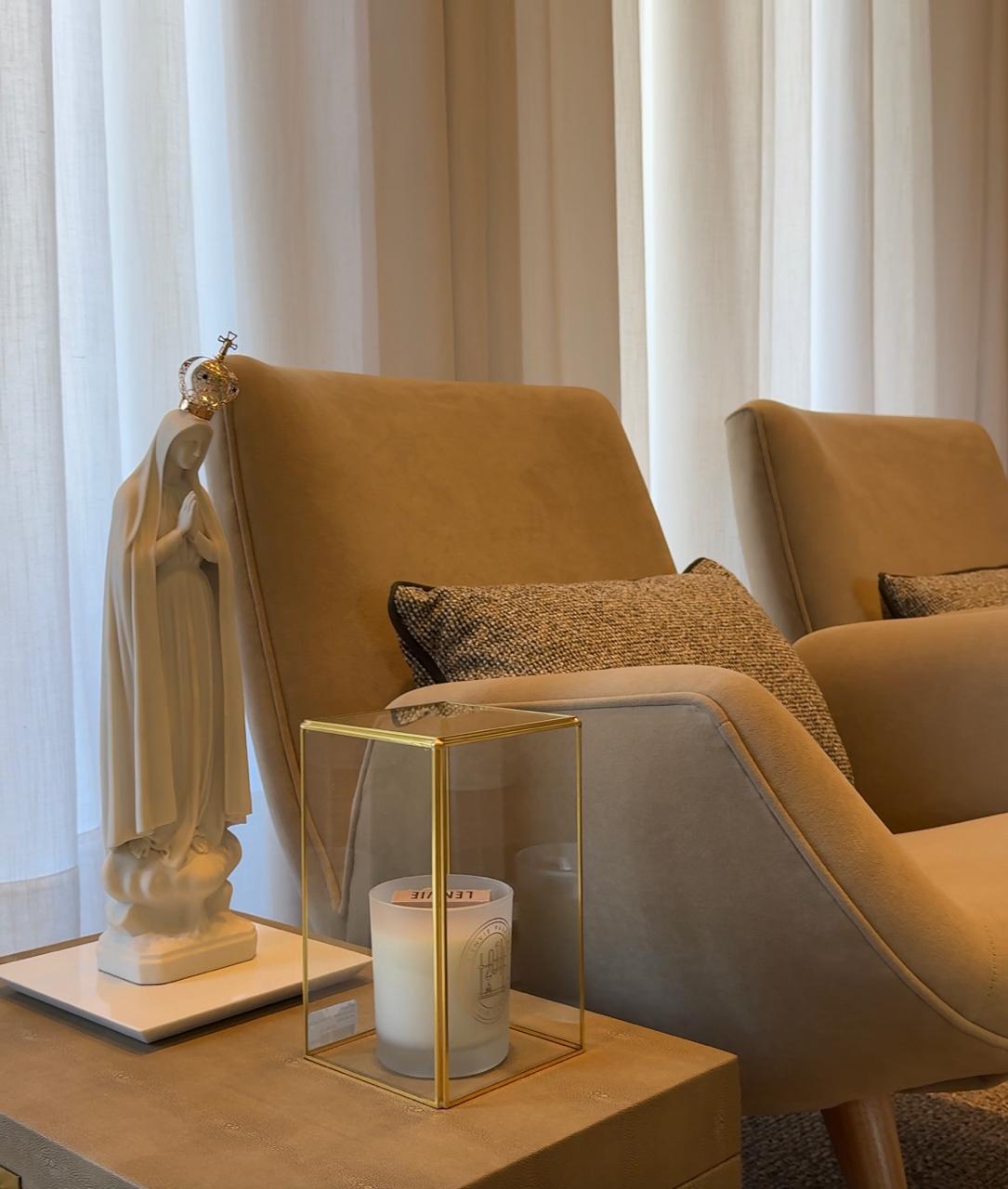 Cúpula de vidro com detalhe em metal dourado: perfeita para valorizar itens de estima na decoração.