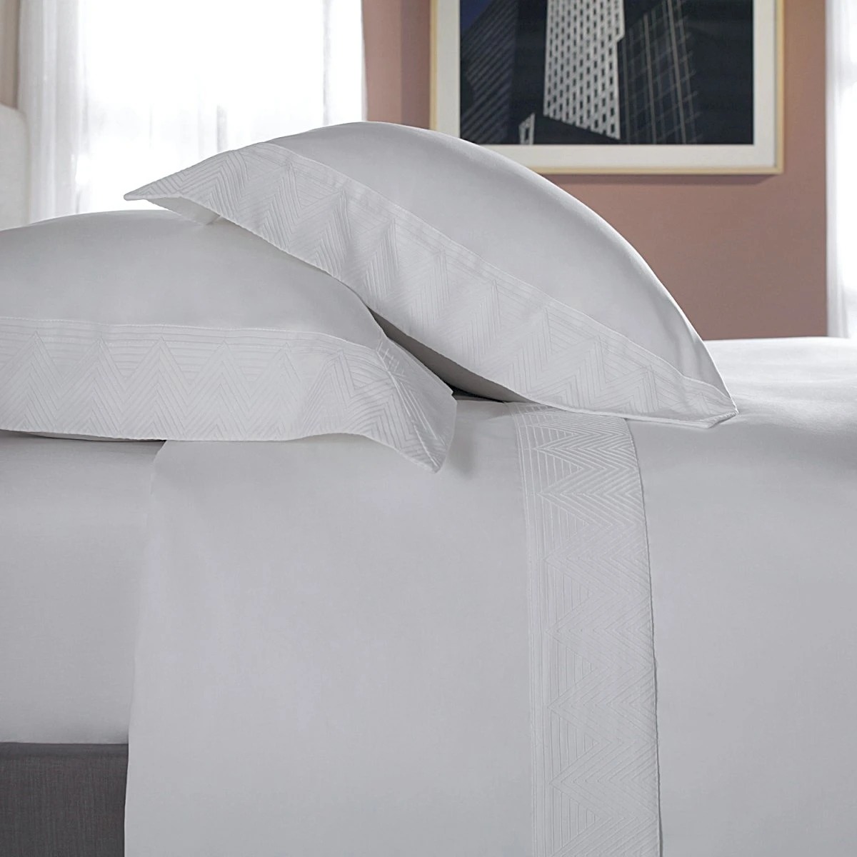 Moderna e diferenciada, a coleção Forest é emoldurada com delicados bordados em padrão chevron, na mesma tonalidade do tecido. Sofisticado e com acabamento impecável, o modelo é elegante, com refinamento em cada detalhe. Toque acetinado muito macio, tem conforto absoluto proporcionado pelos 400 fios. Sua versatilidade permite a combinação com várias peças, trazendo mais beleza à cama.