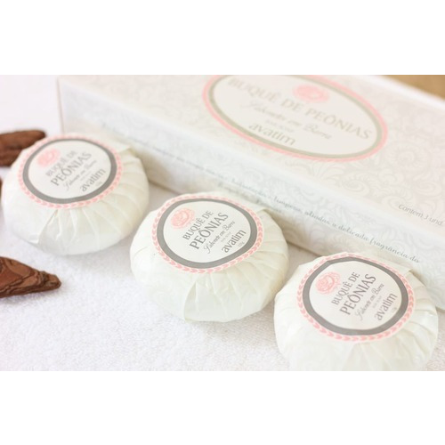 Sabonete em Barra – Buquê de Peônias – 03 unidades. De base vegetal, confere ao corpo maciez, hidratação e limpeza, aliadas a delicada fragrância do Buquê de Peônias.