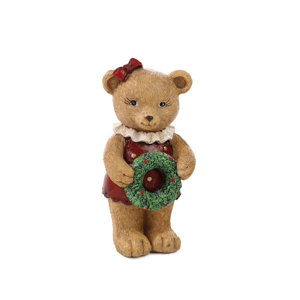 Urso com presente feito em resina pra trazer mais encanto à sua decoração de natal.