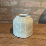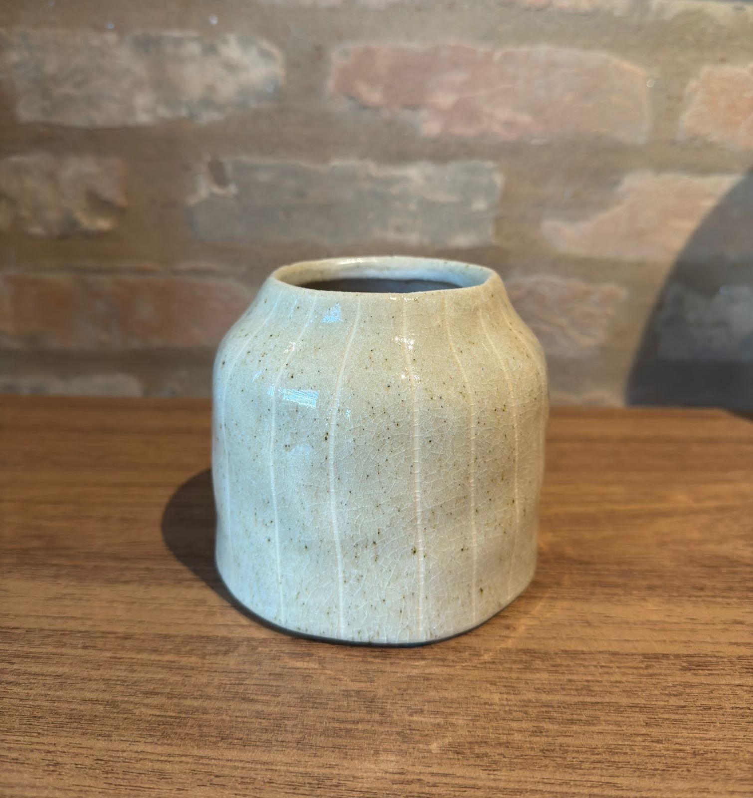 Vaso de cerâmica cinza, com detalhes delicados e modelo minimalista. Elegante e delicado para compor seu décor com modernidade.