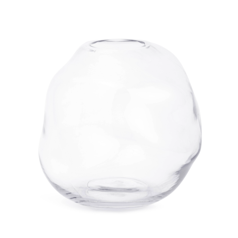 Vaso em vidro orgânico com detalhes por toda a lateral.