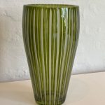 Vaso em vidro verde canelado – charmoso, elegante e imponente para seu decor cheio de sofisticação.