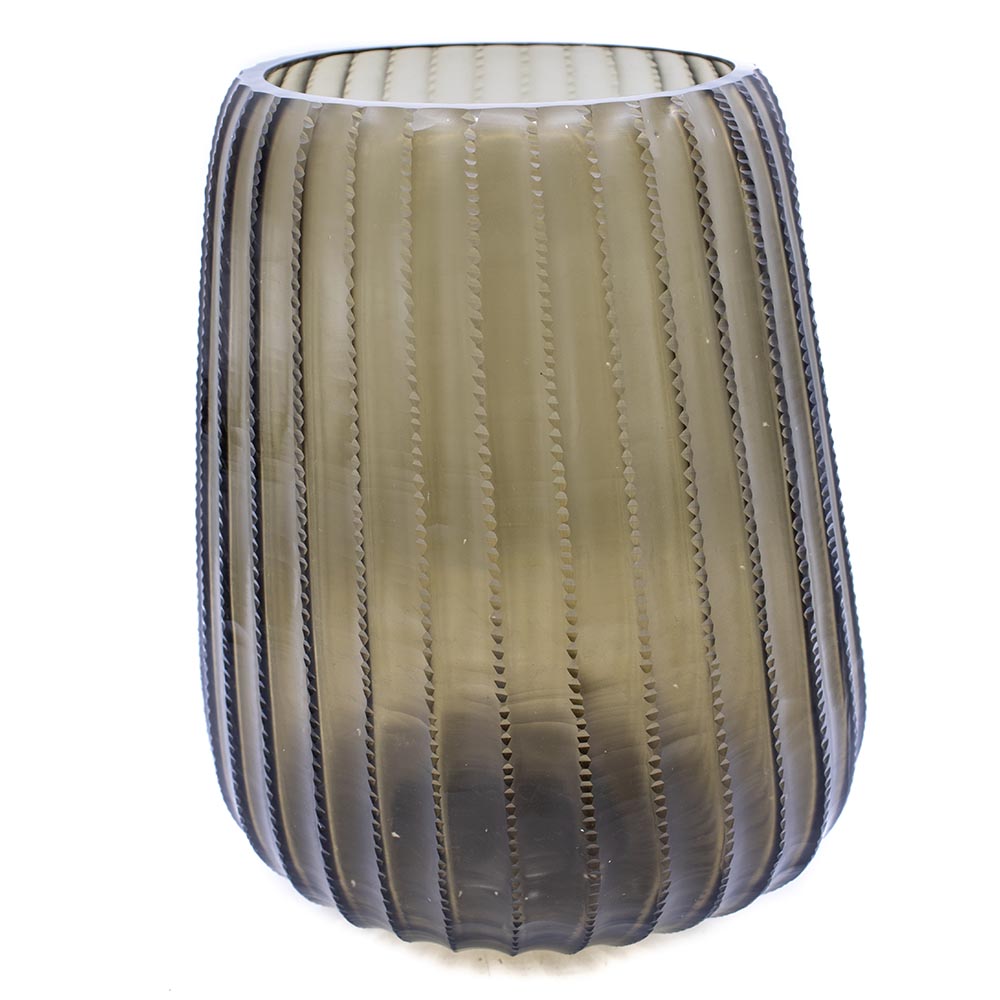 Vaso em vidro, na cor cinza, modelo canelado baixo. Perfeito para modernizar o ambiente, trazendo uma cor clássica e design inovador.