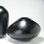Vaso Karu em vidro lapidado na cor preta
