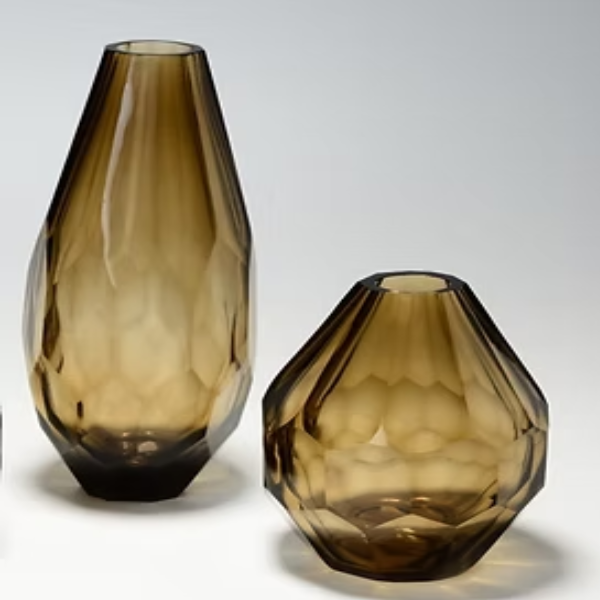 Vaso em vidro lapidado marrom alto com detalhes de lapidação incríveis para o seu decor mais estiloso.