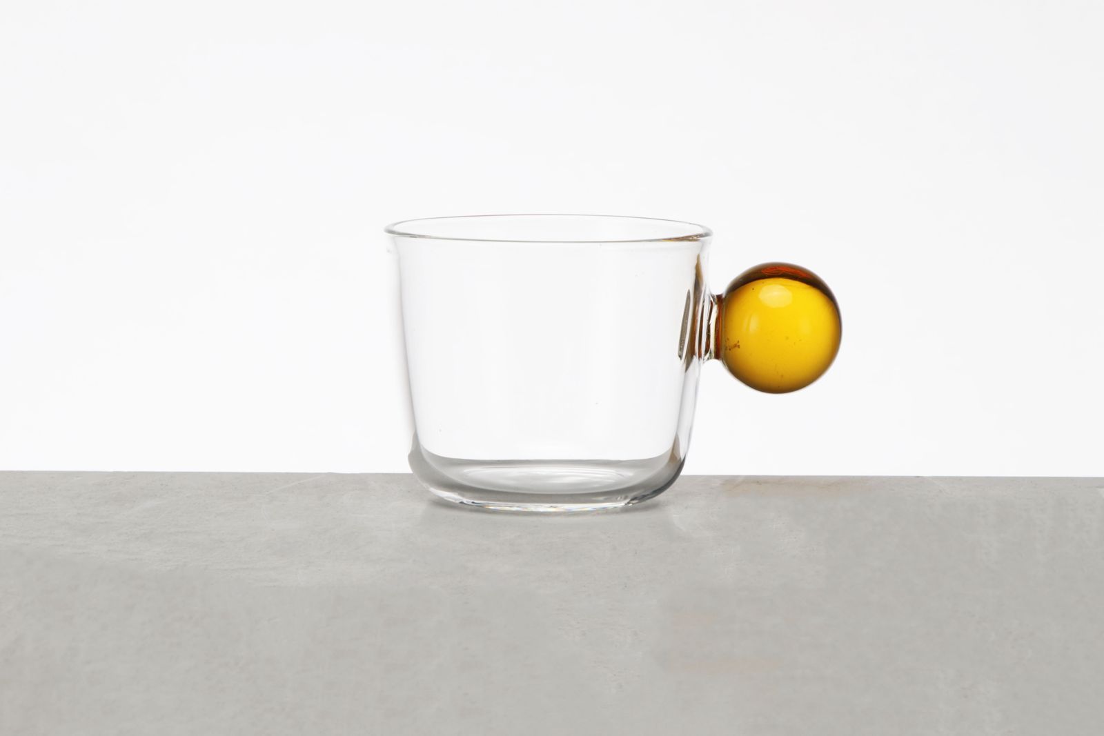 Xícara de café de vidro com detalhe na alça de bolinha amarela: charmosa, diferenciada e elegante!